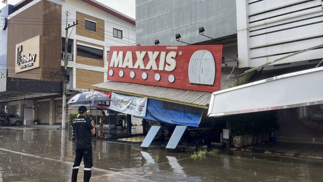จากการสอบถามลูกจ้างในร้านเล่าว่าก่อนเกิดเหตุได้มีฝนตกลงมาและมีลมแรง ทำให้เจ้าของร้านต้องออกไปย้ายและเก็บของเข้ามาในร้าน
