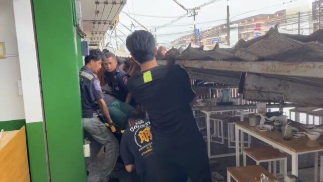 แต่ระหว่างย้ายอยู่ๆกันสาดก็พังยุบตัวลงมาทับเจ้าของร้านที่ จึงรีบเข้าไปช่วยดึงออกมาจากใต้กันสาดแล้วโทรแจ้งกู้ภัยมาช่วยเหลือ