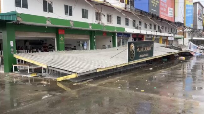 พายุวิภาถล่มเพียง 10 นาที ทำกันสาดพังถล่มทับเจ้าของร้านข้าวมันไก่บาดเจ็บ