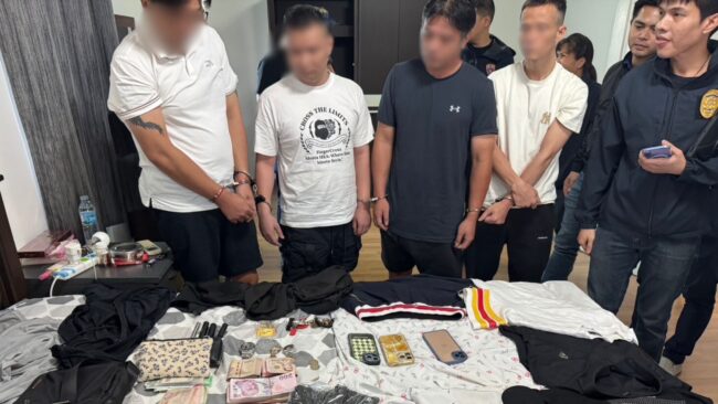 จากการสืบสวนพบว่าคนร้ายใช้รถจักรยานยนต์เป็นพาหนะ กระทั่งวันที่ 4 สิงหาคม 2568 เวลาประมาณ 06.00 น. เจ้าหน้าที่ตำรวจนำหมายค้นศาลอาญาที่ ค.614/2568 ลงวันที่ 3 สิงหาคม 2568 เข้าตรวจค้นบ้านเลขที่ 118/133 หมู่บ้านภัสสร 21 แขวงคลองสองต้นนุ่น เขตลาดกระบัง กรุงเทพมหานคร พบผู้ต้องหาทั้ง 4 คนอยู่ภายใน พร้อมของกลางหลายรายการ ผู้เสียหายยืนยันทรัพย์สินบางส่วนเป็นของตนจริง