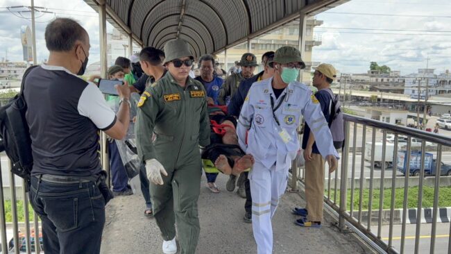 เมื่อเวลา 10.30 น. วันที่ 25 ส.ค. 68 พ.ต.อ.อธิเมศร์ ไชยศรัญวิชญ์ ผกก.สภ.คลองหลวง ได้รับแจ้งมีชายคลุ้มคลั่งใช้ของมีคมทำร้ายตนเอง มีบาดแผลตามร่างกายหลายแห่งมีเลือดท่วมตามแขนและร่างกาย อยู่ด้านบนสะพานลอยคนข้าม หน้าบริษัทเซนทาโก (ใกล้ ม.กรุงเทพ) ถนนพหลโยธิน หลัก กม.ที่ 37+300 ต.คลองหนึ่ง อ.คลองหลวง จ.ปทุมธานี หลังรับแจ้งจึงรุดไปที่เกิดเหตุพร้อมด้วยตำรวจทั้งในและนอกเครื่องแบบ และอาสาสมัครมูลนิธิร่วมกตัญญู หน่วยกู้ชีพเทศบาลเมืองคลองหลวง
