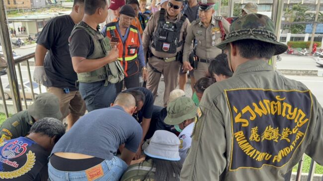 เบื้องต้นจากการสอบถามทราบว่าเป็นชายสัญชาติอินโดนีเซีย อายุประมาณ 35-40 ปี ยังไม่ทราบชื่อ อาสาสมัครมูลนิธิร่วมกตัญญู ได้ทำการปฐมพยาบาลด้วยการทำแผลที่ข้อมือด้านซ้าย และที่หน้าอกมีรอยช้ำ จากการตรวจสอบทราบเพียงว่า มีปัญหาชีวิตและอยากเดินทางกลับบ้าน ก่อนอาสาฯรีบนำส่ง รพ.ธรรมศาสตร์เฉลิมพระเกียรติ