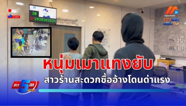 จากกรณีที่เมื่อวันที่ 19 ก.ย. 68 เวลาประมาณ 23.00 น. เจ้าหน้าที่ตำรวจสภ. ปากเกร็ด ได้รับแจ้งเหตุมีคนถูกแทงด้วยอาวุธมีดที่ลำคอได้รับบาดเจ็บ เหตุเกิดภายในร้านสะดวกซื้อแห่งหนึ่งภายในซอยวัดกู้ ตำบลบางพูด อำเภอปากเกร็ด จ.นนทบุรี ในที่เกิดเหตุบริเวณเคาน์เตอร์พบคราบเลือดจำนวนมากพบอาวุธมีดเปื้อนเลือดที่คนร้ายใช้ก่อเหตุตกอยู่ที่พื้นเจ้าหน้าที่ตำรวจเก็บไว้เป็นหลักฐาน ทราบชื่อผู้ได้รับบาดเจ็บคือนางสาวกนิษฐา แสงจันทร์ อายุ 32 ปี เป็นพนักงานภายในร้านถูกอาวุธมีดแทงบริเวณลำคอและบริเวณแขน อาการสาหัสพลเมืองดีนำตัวส่งโรงพยาบาลวิภารามปากเกร็ด