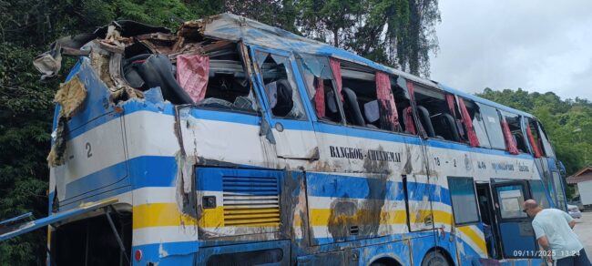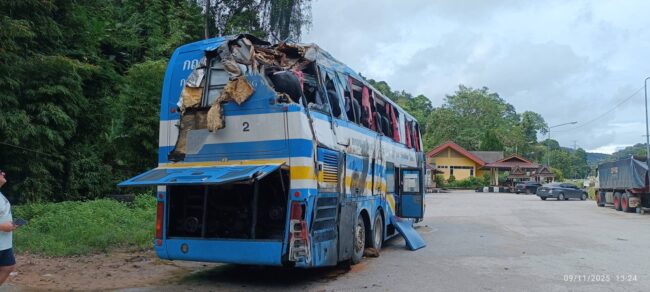 ศูนย์อำนวยการความปลอดภัยทางถนนจังหวัดลำปาง รายงานข้อมูลการรักษาผู้บาดเจ็บจากอุบัติเหตุรถทัวร์พลิกคว่ำ ดังนี้เข้ารักษาตัว รพ.ลำปาง และ refer จาก รพ.ห้างฉัตร รวม 15 ราย admit 6ราย (สีแดง 1ราย บาดเจ็บศีรษะ ใส่ tube ช่วยหายใจ)สีเหลือง 5 ราย