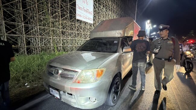 ในที่เกิดเหตุบริเวณป้ายโฆษณาขนาดใหญ่ เจ้าหน้าที่พบรถกระบะโตโยต้า ยี่ห้อวีโก้ สีเทา (แบบตู้ทึบ) หมายเลขทะเบียน บต-1342 สิงห์บุรี แต่ป้ายภาษีที่ติดอยู่หน้ากระจกรถระบุว่าเป็นรถยี่ห้อโตโยต้า หมายเลขทะเบียน ตร-1225 กรุงเทพมหานคร จากการตรวจสอบภายในรถ ที่บริเวณตู้ทึบด้านหลัง พบยาไอซ์ จำนวน 15 กระสอบ กระสอบละประมาณ 25 กิโลกรัม ส่วนคนขับหลบหนีไปได้ เจ้าหน้าที่ จึงได้กระจายกำลังเพื่อค้นหาและขออุปกรณ์ส่องแสงสว่างจากทางเจ้าหน้าที่กู้ชีพเทศบาลนครรังสิต แต่ในเบื้องต้นยังไร้วี่แววคนขับ