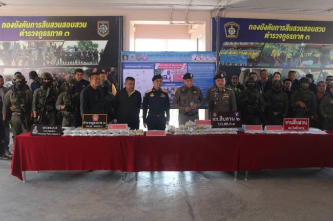 ตำรวจภูธรภาค 3 แถลงข่าว การจับกุมผู้ต้องคดียาเสพติดพร้อมของกลางยาบ้า 400,000เม็ด