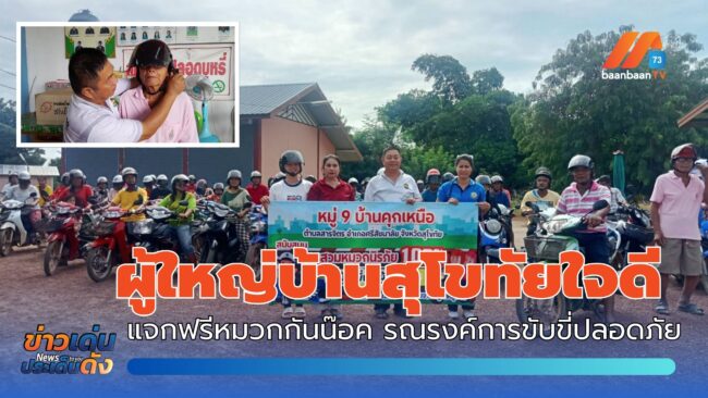 จ.สุโขทัย : ผู้ใหญ่บ้านแจกฟรีหมวกกันน๊อคให้กับลูกบ้าน รณรงค์การขับขี่ปลอดภัย สวมหมวกนิรภัยเพื่อลดอุบัติเหตุจราจรทางบก