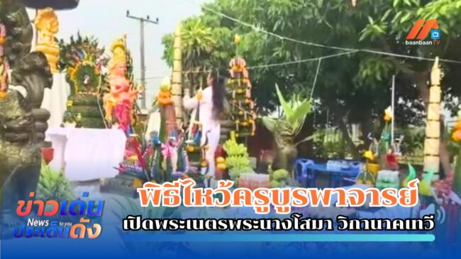 จ.สุรินทร์ – พิธีไหว้ครูบูรพาจารย์ เปิดพระเนตร “พระนางโสมา วิกานาคเทวี”