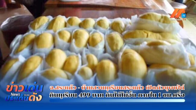จ.สระแก้ว – บ้านสวนทุเรียนสระแก้ว เปิดตัวบุพเฟ่ต์กินทุเรียน-ผลไม้ 499 บาท กินได้ไม่อั้น ภายใน 1 ชม.ครึ่ง