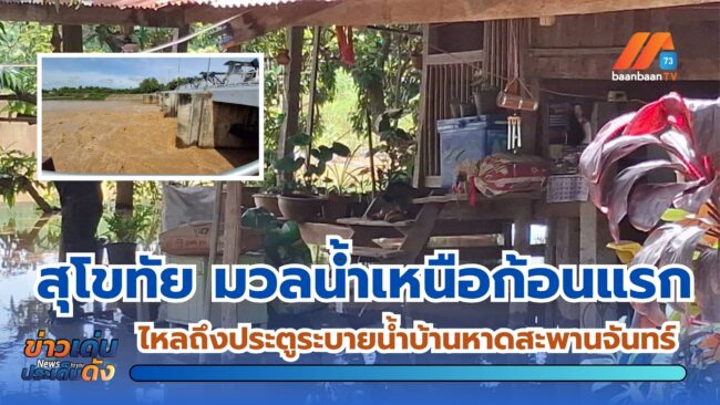 จ.สุโขทัย : (มีคลิป) มวลน้ำเหนือก้อนแรกไหลถึงประตูระบายน้ำบ้านหาดสะพานจันทร์ จ.สุโขทัยแล้ว