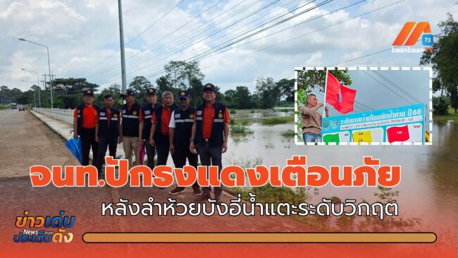 จ.มุกดาหาร​ -​ จนท.ปักธงแดงเตือนภัย หลังลำห้วยบังอี่น้ำแตะระดับวิกฤต – พบน้ำท่วมโครงการก่อสร้างเขื่อนป้องกันตลิ่งและพื้นที่ลุ่มต่ำบางส่วน