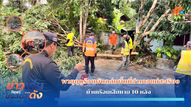 พายุฤดูร้อนพัดถล่มพื้นที่อำเภอแม่สะเรียง บ้านเรือนเสียหาย 10 หลัง เมื่อวันที่ 28 เมษายน 25…