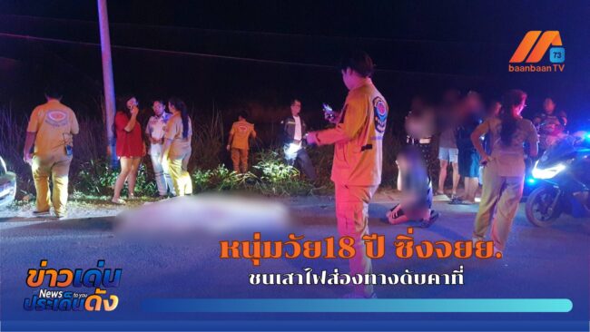 ชลบุรี…หนุ่มวัย18 ปี ซิ่งจยย.มาด้วยความเร็วรถเสัยหลักชนเสาไฟส่องทางดับคาที่ เมื่อเวล…