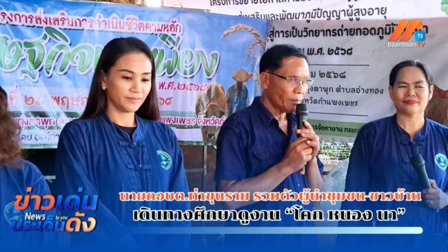 จ.กำแพงเพชร – นายกอบต.ท่าขุนราม รวมตัวผู้นำชุมชนและชาวบ้านเดินทางดูงาน “โคก หนอง นา”