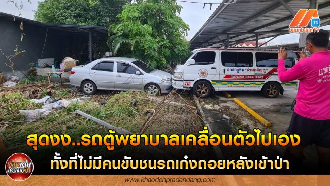 สุดงง..รถตู้พยาบาลเคลื่อนตัวไปเองทั้งที่ไม่มีคนขับชนรถเก๋งถอยหลังเข้าป่า