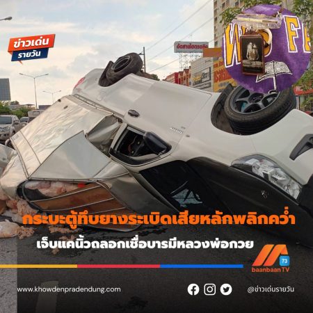 กระบะตู้ทึบยางระเบิดเสียหลักพลิกคว่ำเจ็บแคนิ้วถลอกเชื่อบารมีหลวงพ่อกวยทำให้รอดราวปาฏิหาริย…