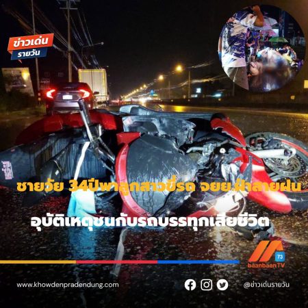 ชายวัย 34ปีพาลูกสาวขี่รถ จยย.ฝ่าสายฝนกลับบ้านเกิดอุบัติเหตุชนกับรถบรรทุกเสียชีวิตลูกได้รับ…