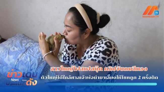 นครนายก – สาวใหญ่โฟสเฟสบุ๊ค คลิปจับกบสีทองตัวใหญ่ได้ใกล้ศาลเจ้าพ่อนำมาเลี้ยงให้โชคถู…