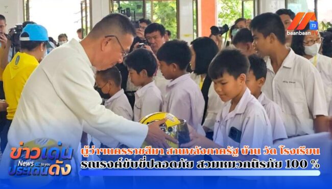 จ.นครราชสีมา – ผู้ว่าฯโคราช สานพลังภาครัฐ บ้าน วัด โรงเรียน รณรงค์ขับขี่ปลอดภัย สวมหมวกนิรภัย 100 %