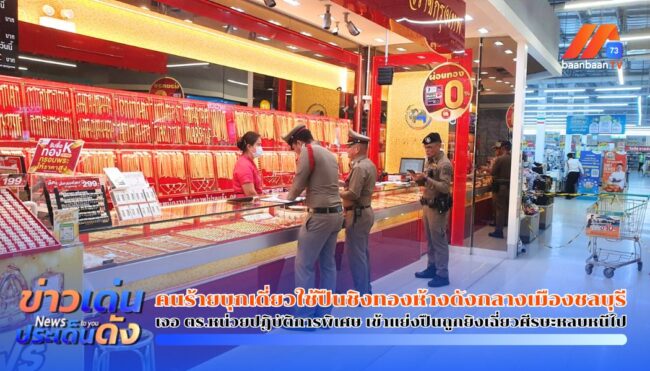 Read Moreจ.ชลบุรี – คนร้ายบุกเดี่ยวใช้ปืนชิงทองห้างดังกลางเมืองชลบุรี เจอ ตร.หน่วยปฏิบัติการพิเศษ เข้าแย่งปืนถูกยิงเฉี่ยวศีรษะหลบหนีไป