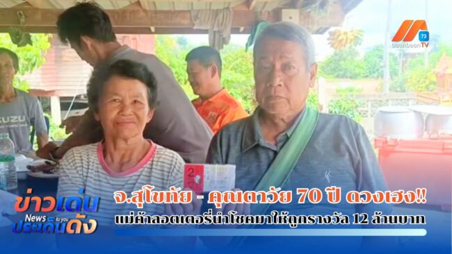 Read Moreจ.สุโขทัย – คุณตาวัย 70 ปี ดวงเฮง!! แม่ค้าลอตเตอรี่นำโชคมาให้ถูกรางวัล 12 ล้านบาท