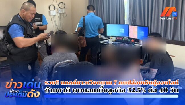จ.ปทุมธานี – รวบ!! แกงค์ชาวเวียดนาม 7 คนปล่อยเงินกู้ออนไลน์ข้ามชาติ พบดอกเบี้ยสูงถึง 32.5% ต่อ 40 วัน