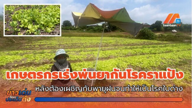 เกษตรกรขอนแก่นเร่งพ่นยากันโรคราแป้งในผักสลัด หลังต้องเผชิญกับพายุฝนจนทำให้เป็นโรคใบด่าง ขณ…